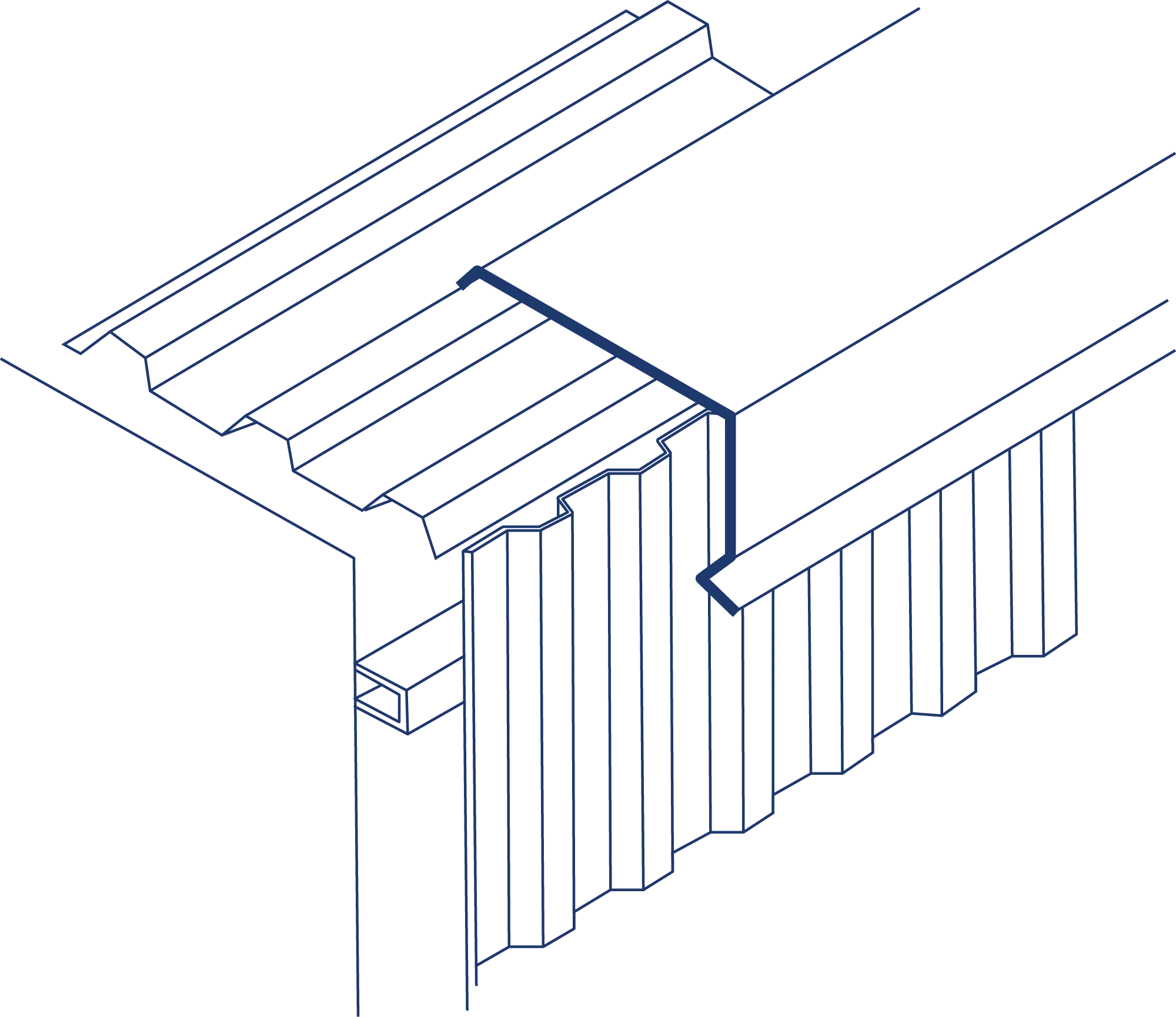 Se coloca en la parte superior lateral de la cubierta fijándola con remaches a la cara inferior de las láminas y lo más cerca posible del borde. El solape entre los remaches será de 100 mm.